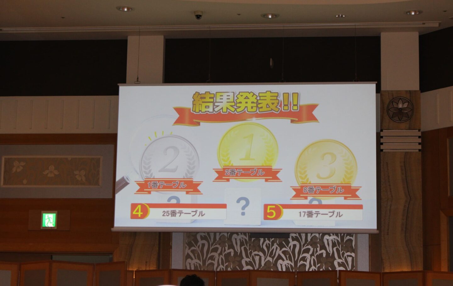 クイズでは、テーブルごとにチームに分かれ、食事を楽しんだり、クイズに正解するために試行錯誤をしている様子が